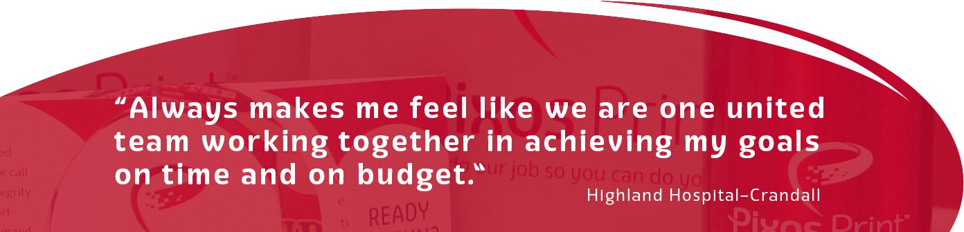 That means you can stop babysitting your printing company. You don't have to remind us to get your work done—you can rest assured that Pixos Print will deliver on time, on budget, and on target. You can go back to doing the rest of your job with the knowledge that we will do exactly what you need.